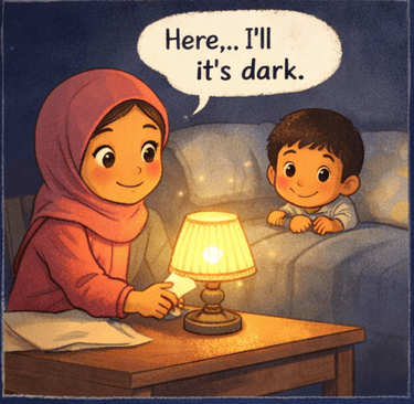 That night, Amina looked at her little lamp and smiled.